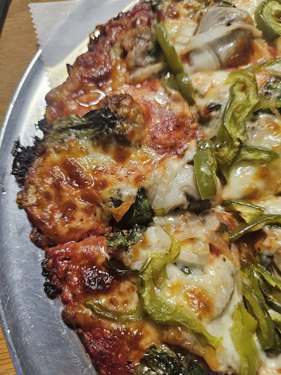 First off, the deals and prices at this place (especially for dine in) are top notch. The service was also great and very accommodating. The pizza itself was good but was inconsistent throughout. The edges were nice and crispy but the inner pieces lacked the same quality. The sausage was the highlight! It was very, very good. The sauce was a little sweet side for my liking but not a deal breaker. I’d like to try a smaller pie next time and ask for it well done.