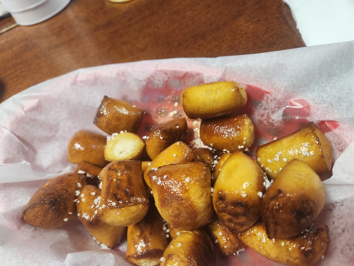 The experience here extends beyond just the pizza itself. The thin, crisp crust—light enough to savor without feeling heavy—acts as the perfect canvas for various toppings that are thoughtfully applied, never overwhelming but always satisfying. The scents of garlic bread with melted cheese and the faint buttery notes in the crust add to the quietly joyful simplicity of the meal. You might catch yourself reaching for a pretzel bite or a handful of fries, enjoying the familiar comfort of classic accompaniments that feel just as authentic as the main event.